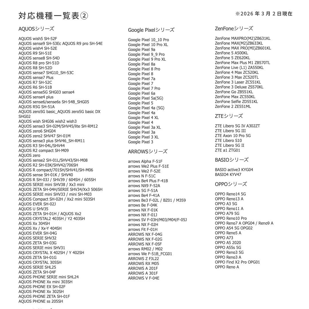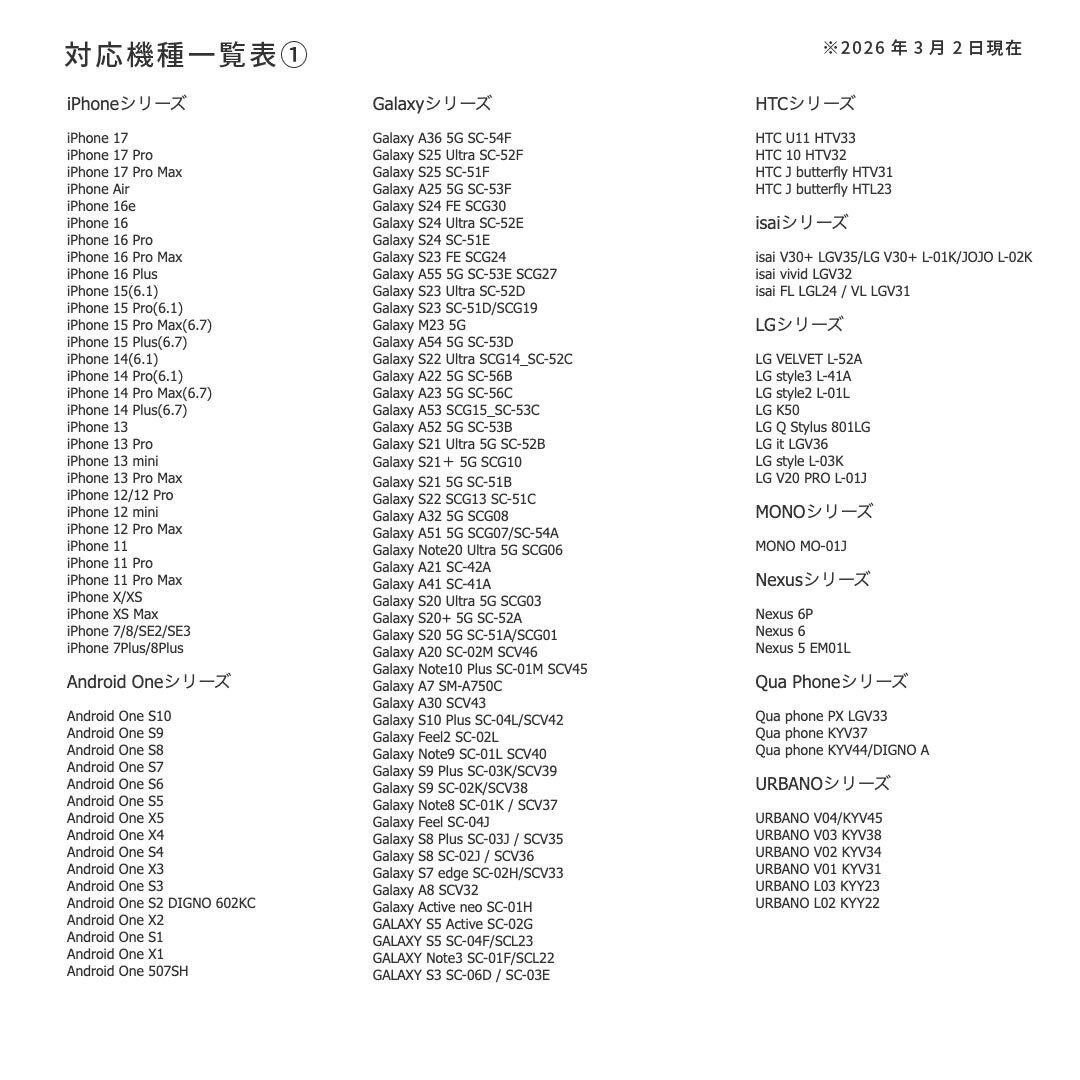・人気機種ほぼ全対応(iPhone/Android各種)