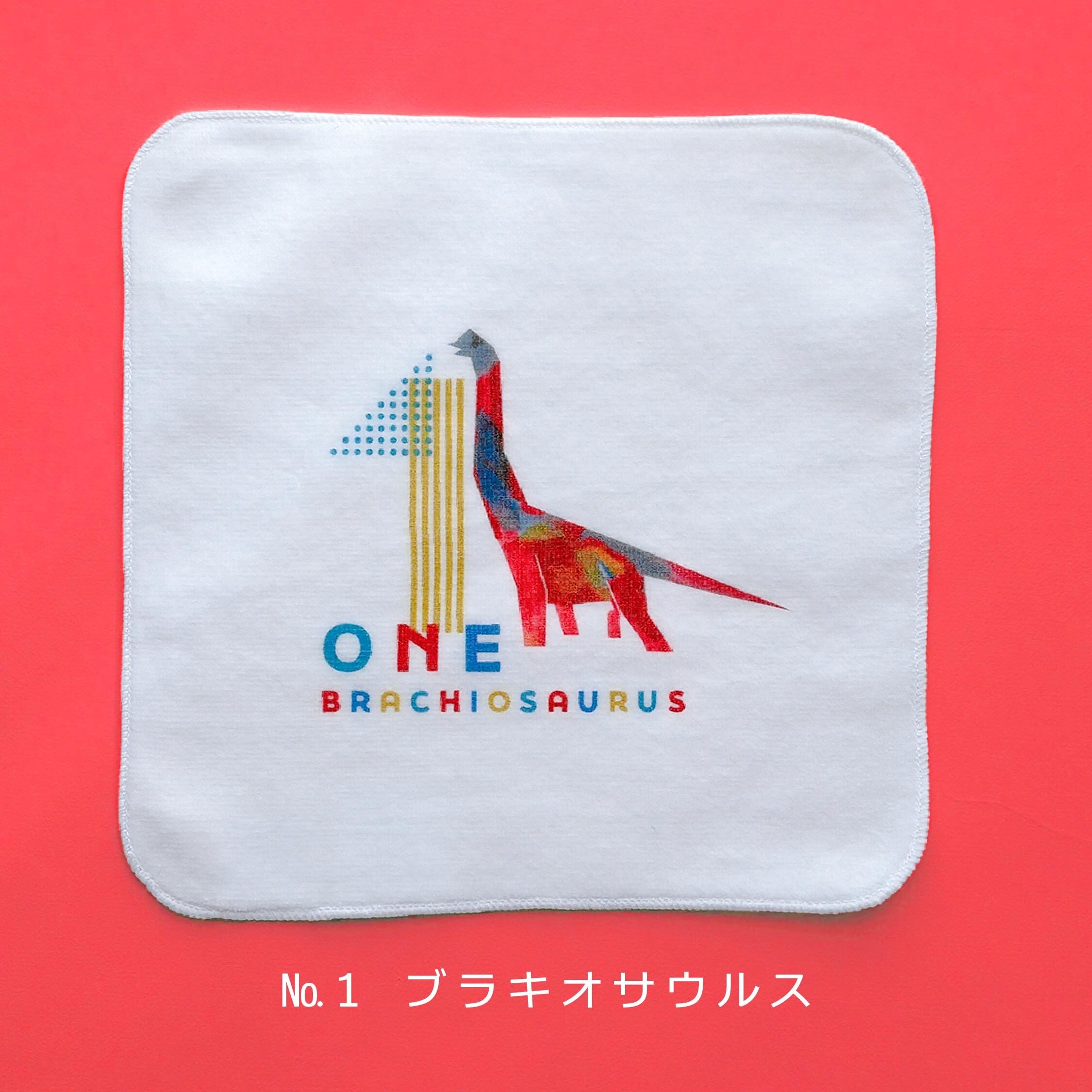オリジナルの「カクカク恐竜」デザインのミニタオルです。